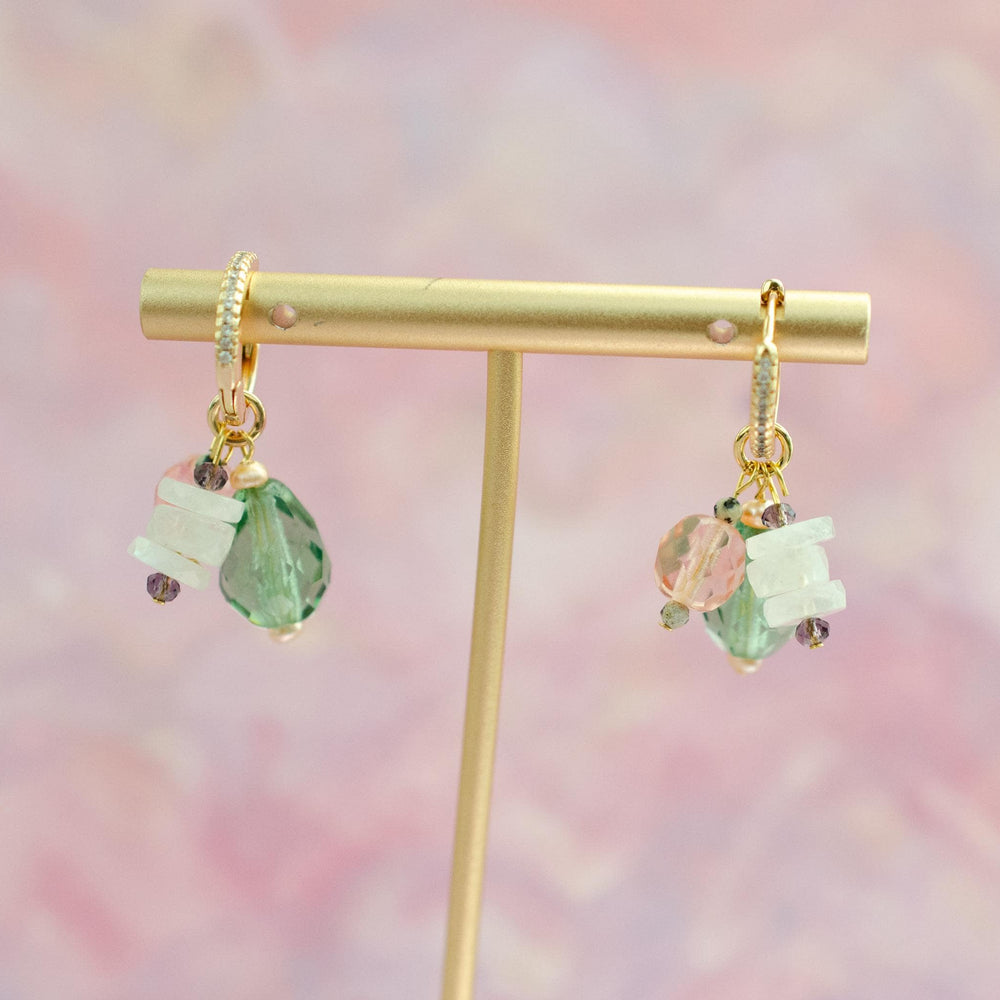 Isla Charm Earrings - Green & Pink Charm Hoop Earrings